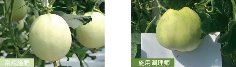 甜瓜應(yīng)用效果:促進(jìn)甜瓜生長,單果質(zhì)量由790g增加到890g,增加了12.66%。