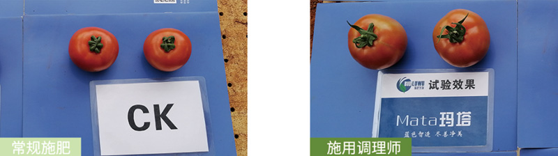 番茄應(yīng)用效果:使用瑪塔牡蠣鈣后,番茄果實大小均勻,平均單果重顯著增加,果實硬度高,耐儲存。
