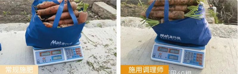 胡蘿卜應(yīng)用效果:與常規(guī)施肥相比,使用瑪塔調(diào)理師胡蘿卜條形更好,果重更大并顯著減少裂果。