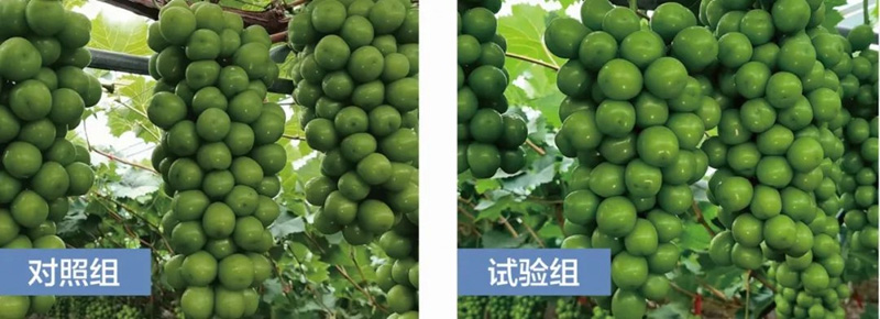 葡萄應(yīng)用效果:使用瑪塔牡蠣鈣后,葉片顏色濃綠,有利于光合作用,葡萄果粒大小均勻,硬度高。